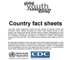 Country fact sheets The World Health Organization (WHO) and the Centers for Disease Control and Prevention (CDC), Atlanta, developed the Global Youth Tobacco Survey to track tobacco use among youth across countries using a common methodology and core questionnaire.